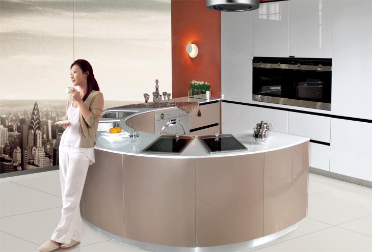 Για αυτήν τη σειρά , υιοθετήσαμε ένα κυκλικό τόξο γύρω από το σχεδιασμό για εξοικονόμηση χώρου και ταυτόχρονα αίσθηση μόδας και τεχνολογίας. Στο χρώμα επιλέγουμε high gloss λευκό και λάκα σαμπάνιας.